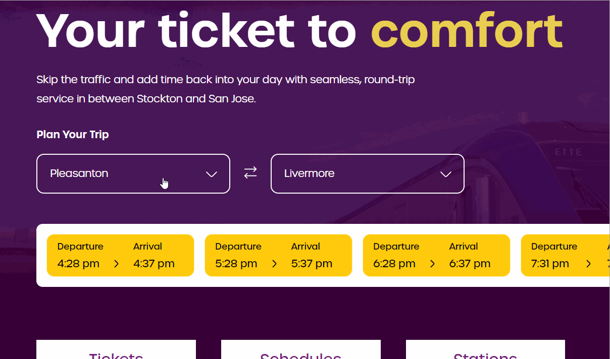Understanding the time constraints of harried commuters, we implemented this experience right in the main hero unit of the homepage, ensuring that users didn't need to scroll or navigate through the website to access this crucial information. By placing it prominently and streamlining the interaction, we aimed to deliver a seamless and ultra-quick experience that allowed commuters to effortlessly access the train schedule information they needed for their daily journeys.