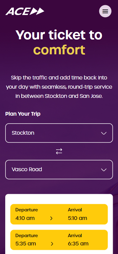 In order to deliver a seamless user experience to the commuters of ACERail, we had multiple design challenges to overcome. Using JQuery and some sophisticated solutions, we were able to completely revamp the ACERail digital experience by creating an easy to navigate train schedules page. This included dropdowns that were WCAG compliant, easy to use and quick to load, Real time data fetching that helped users get exact arrival / departures times about their trains, which helped them plan their entire journey, improve website speed and performance while maintaining the comforting brand aesthetics of ACERail. All in all, we were able to build a User-friendly digital solution for the transportation industry in record time, and now so can you.