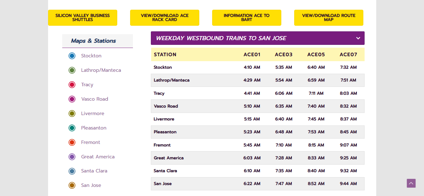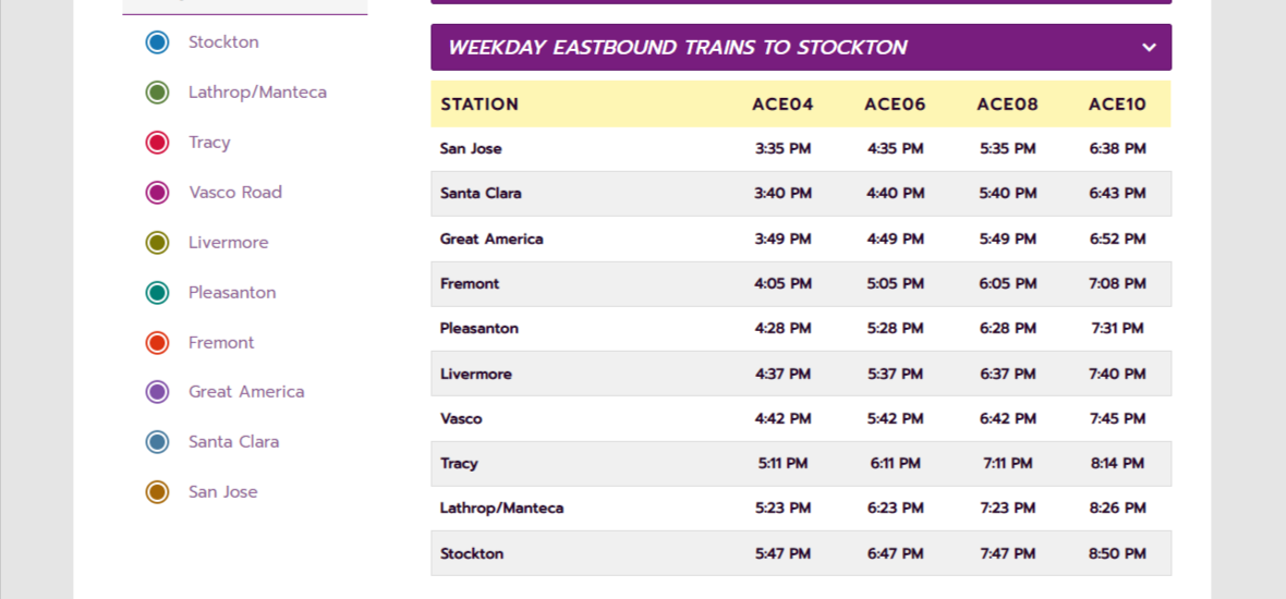ACE operates trains on weekdays, with limited service available on weekends for special events. The trains generally offer morning and evening commute options, aligning with typical work hours. The frequency of trains varies depending on the specific route and time of day.