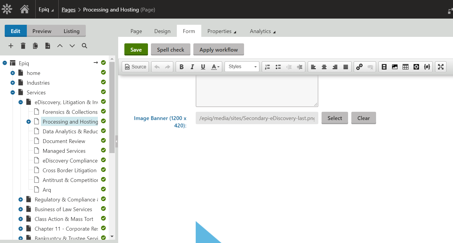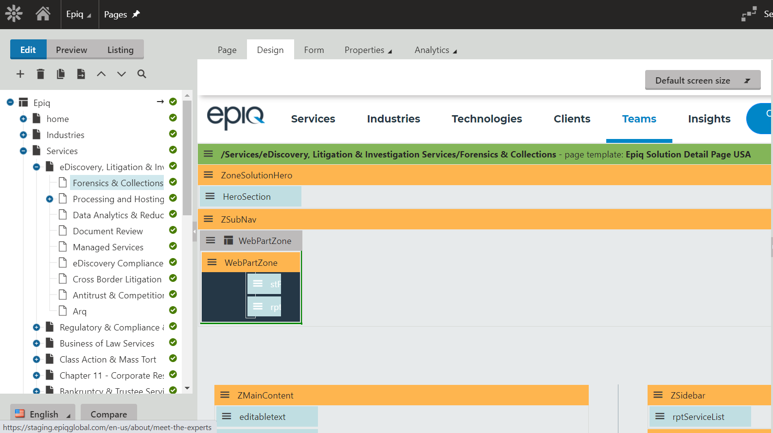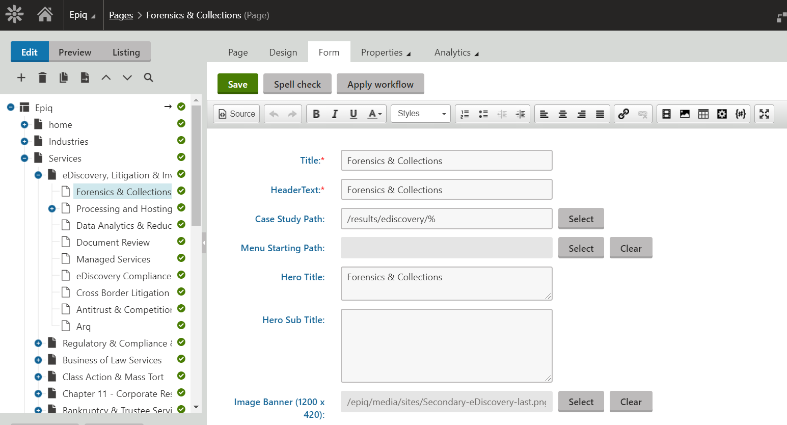 The www.epiqglobal.com website has several pages that describe the company’s services that they offer. Each of these services pages has a specific structure to the content. Specifically, we need to do the following things: