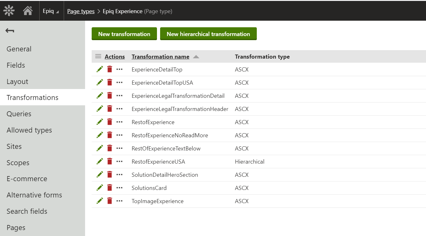 Step 3 : We added Transformations that contain render code for the fields we created. These transformations support ASCX, HTML, Text/XML, XSLT and jQuery code.