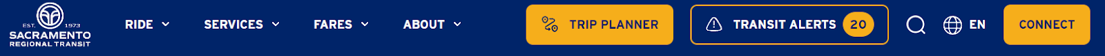 We wanted to ensure that the trip planner resonated naturally with the look and feel of the style guide of the SACRT website - starting with the fonts and buttons. The fonts used were Commuter Sans ( semi bold ) and Interstate ( bold, regular ). For the buttons, we used Primary Marigold ( Hex #F6AE1B ) and Royal Blue ( Hex #002469 ).