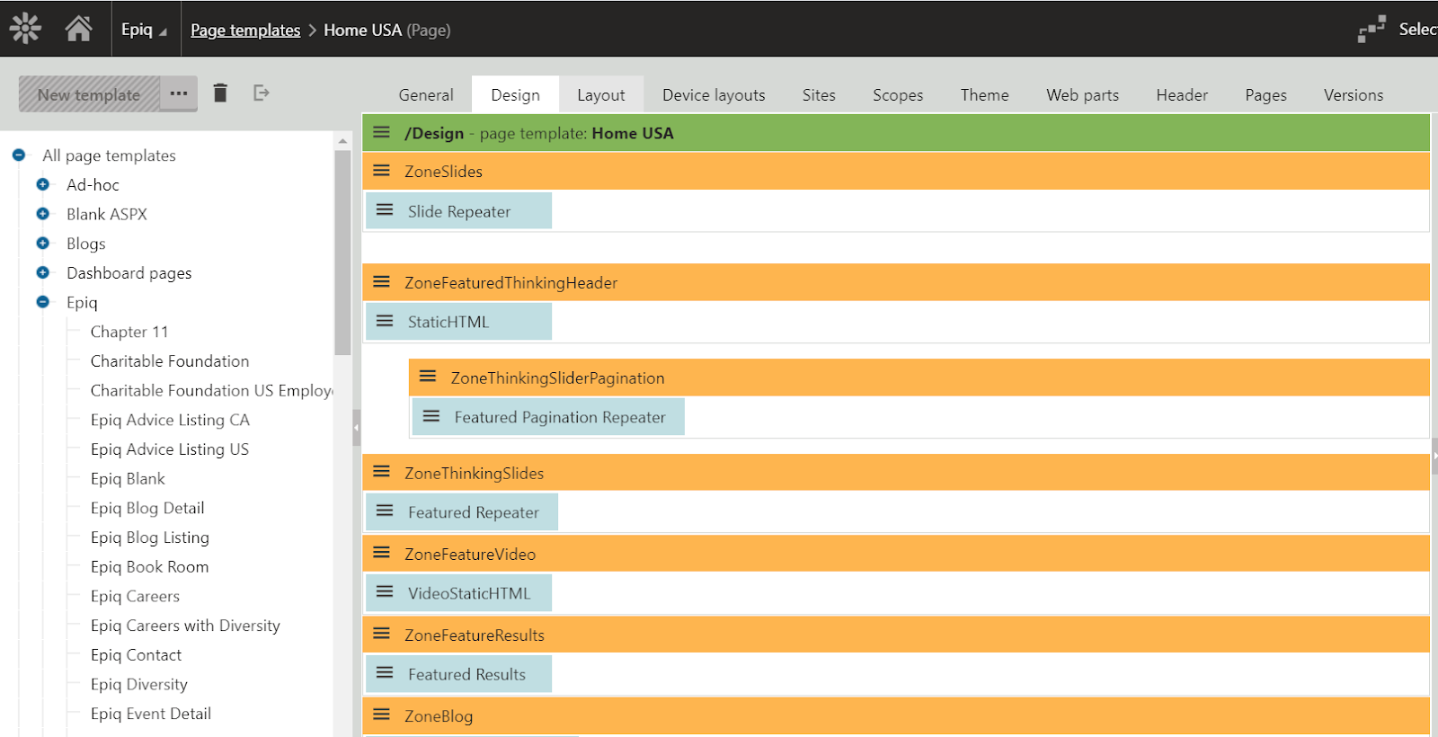 We then created the layout and added webparts to the template based on the new design for the US. Since it is a different template, the design changes done here won't affect the other culture pages. you can check out our article about creating webparts here
