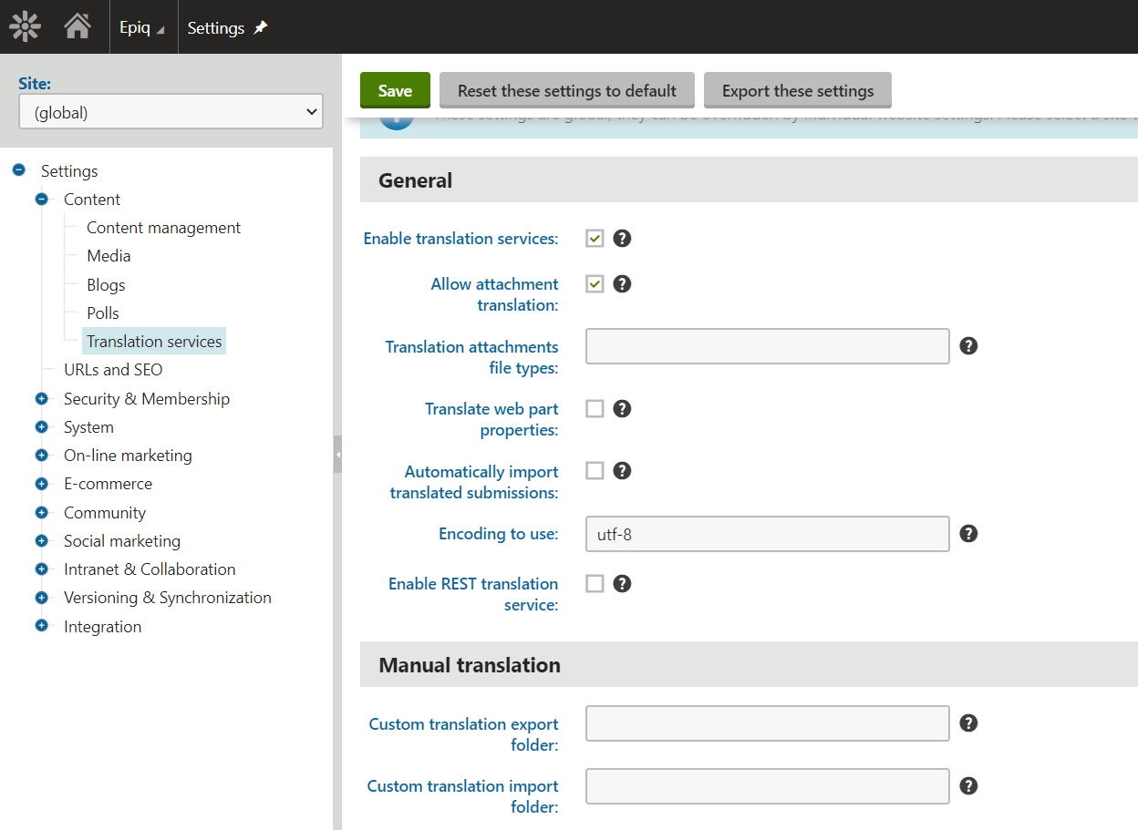 Standard services (human translation) - provide an automated interface between Kentico and external human translators. By default, you can use the Translations.com service. See Human translation services - Translations.com.