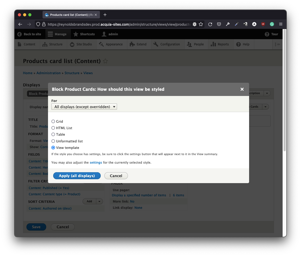The cost is great, the price is high… Take all you know and say goodbye 🎶 – The Blue Cafe by Chris Rea, closely rhymed with what was about to uncover. Views are largely supported in Site Studio; from building pages, blocks, embeds to exposing filter forms, Site Studio takes over the entire file-based templating in views through several hoops.