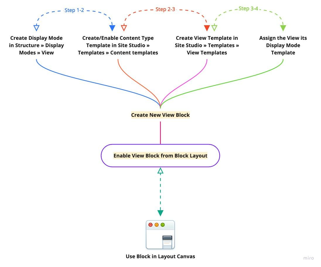 Looks formidable? well, it was a giveaway to revisit the early architectural decision of flying with Site Studio because you’re tightly roped with WYSIWYG templating i.e. fields, content, or nodes, display modes, or views have to use the visual template builder instead of piled up file-based templates. Let’s examine the actual flow in Site Studio to create a view-based component:
